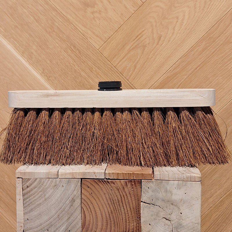Balai en fibres coco de 29 cm avec semelle en bois et douille polypro.