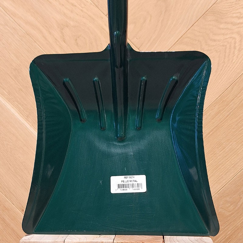 Pelle robuste en métal laqué vert foncé, largueur 23 cm.