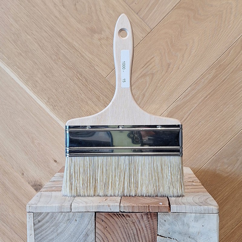 Spalter à lisser ou à vitrifier en soies de Chine blondes, virole acier nickelé, manche en bois brut.